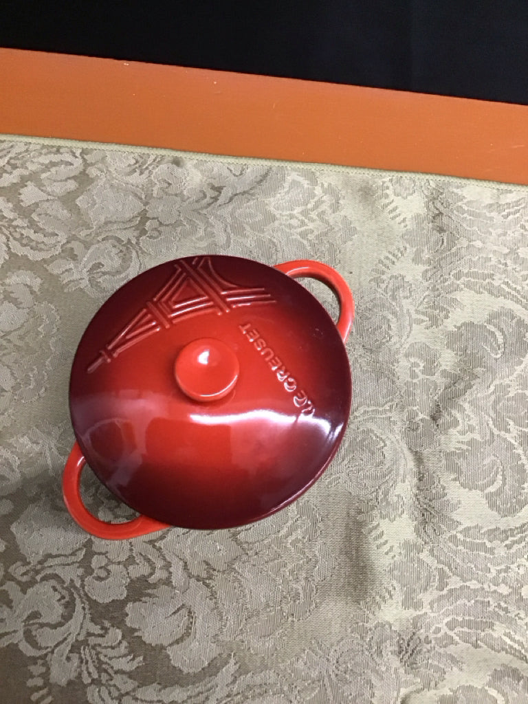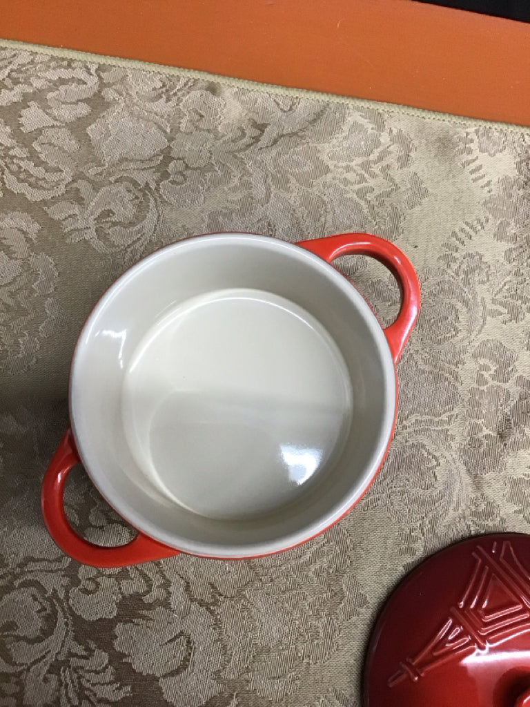 Le Creuset Red 8oz Eiffel Tower Mini Round Cocotte NEW (BOX)