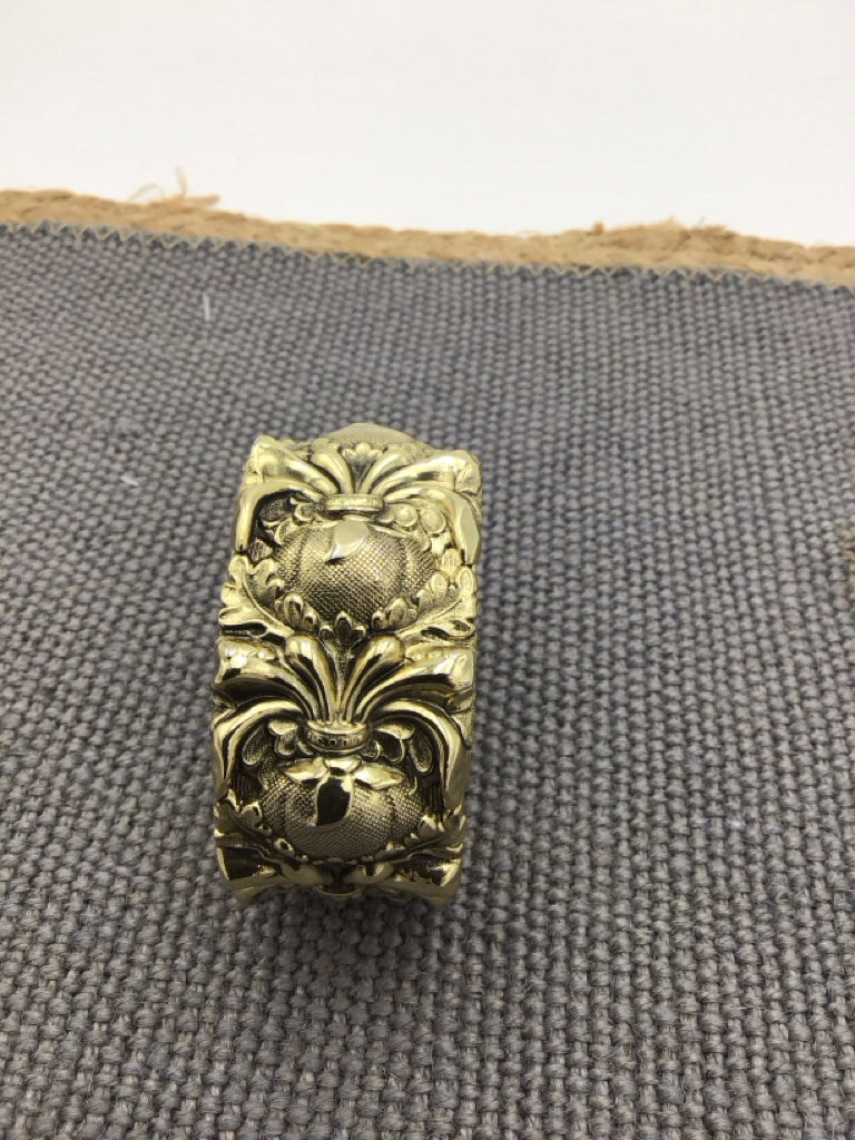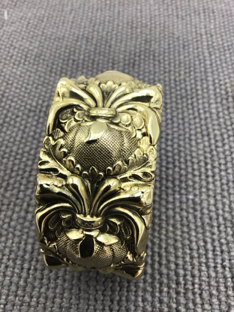 Vintage Whiting & Davis Co. Ornate Floral Gold Tone Hinged bangle Bracelet