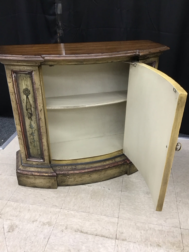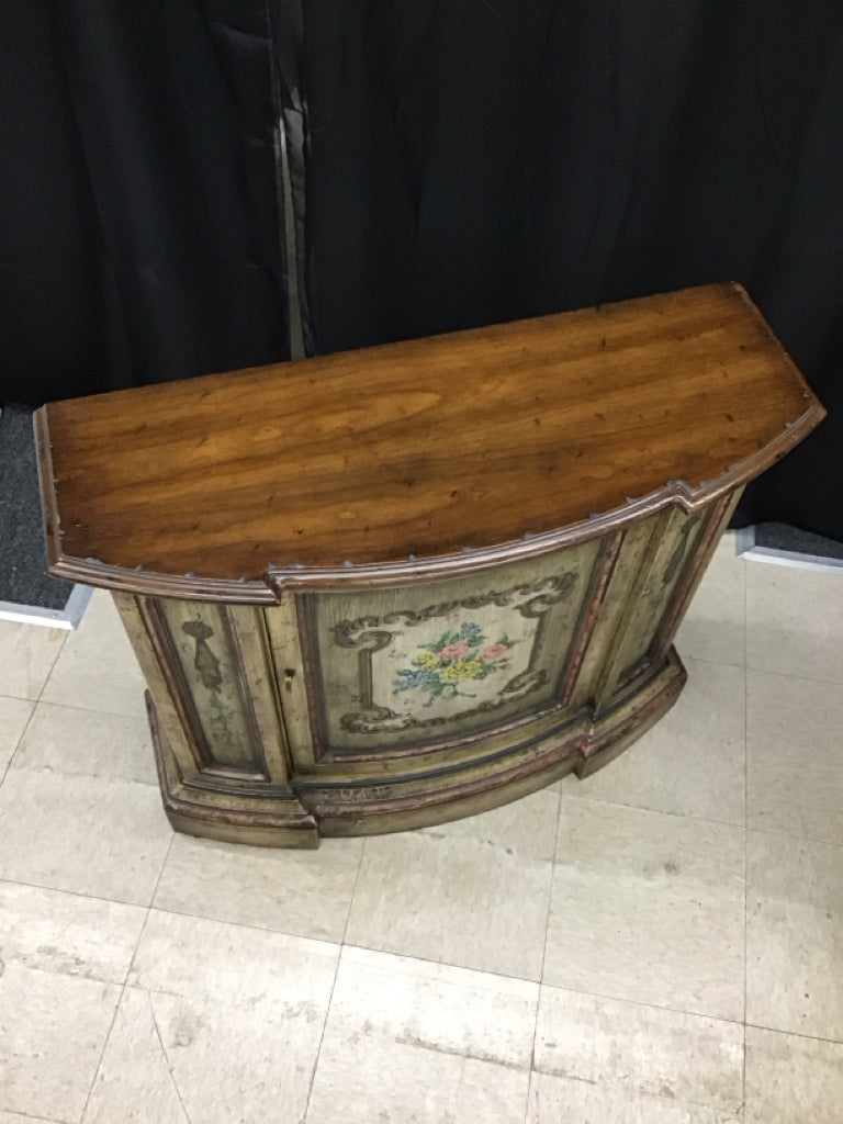 Italian-style painted credenza, curved front, hand-painted floral motifs