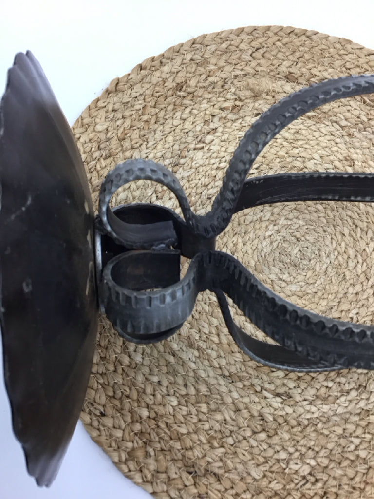 24" Tall Brutalist Wrought Iron Metal Candle Holder 1970s Germany Pillar Candle incuded