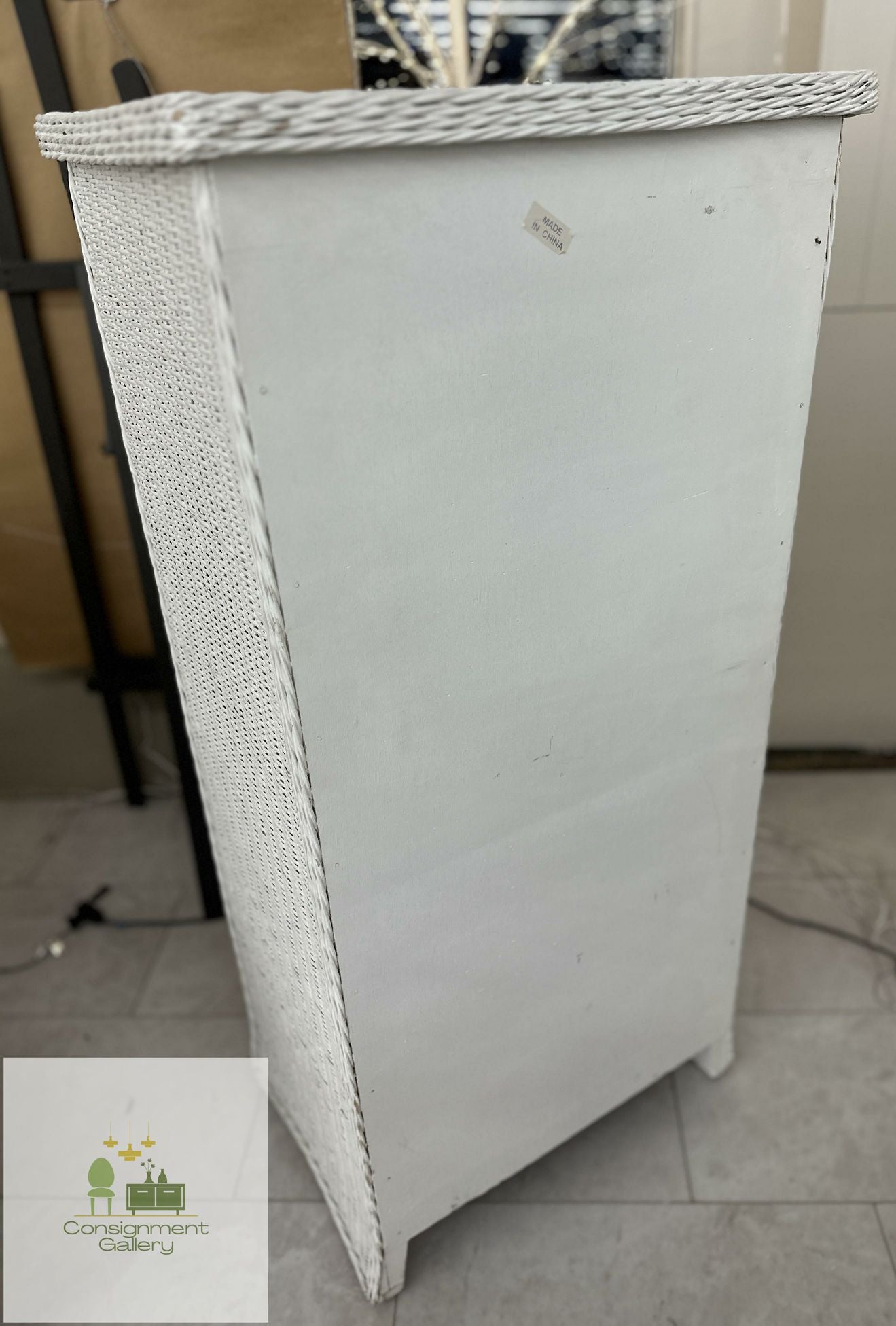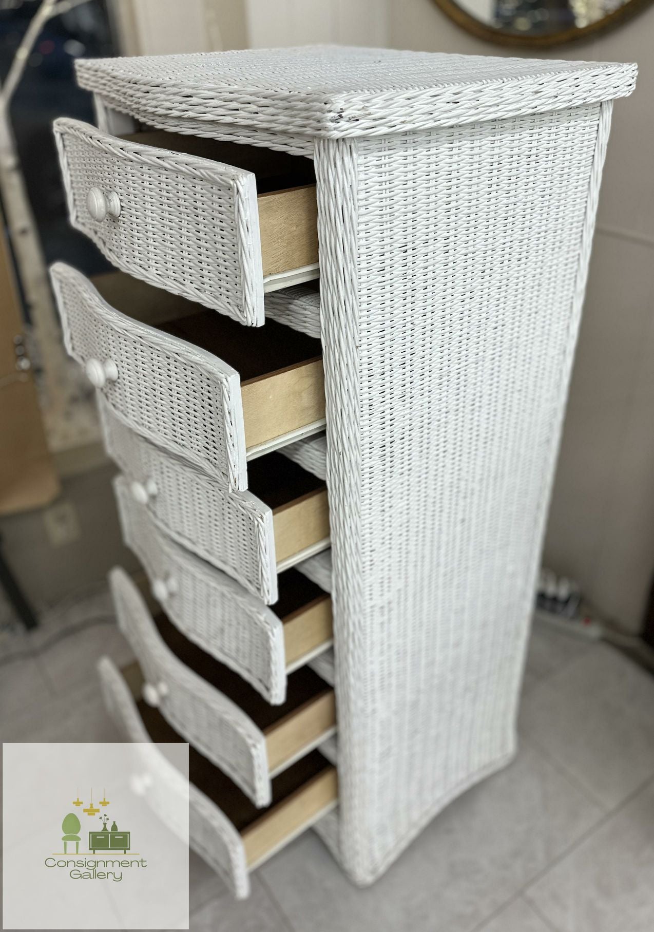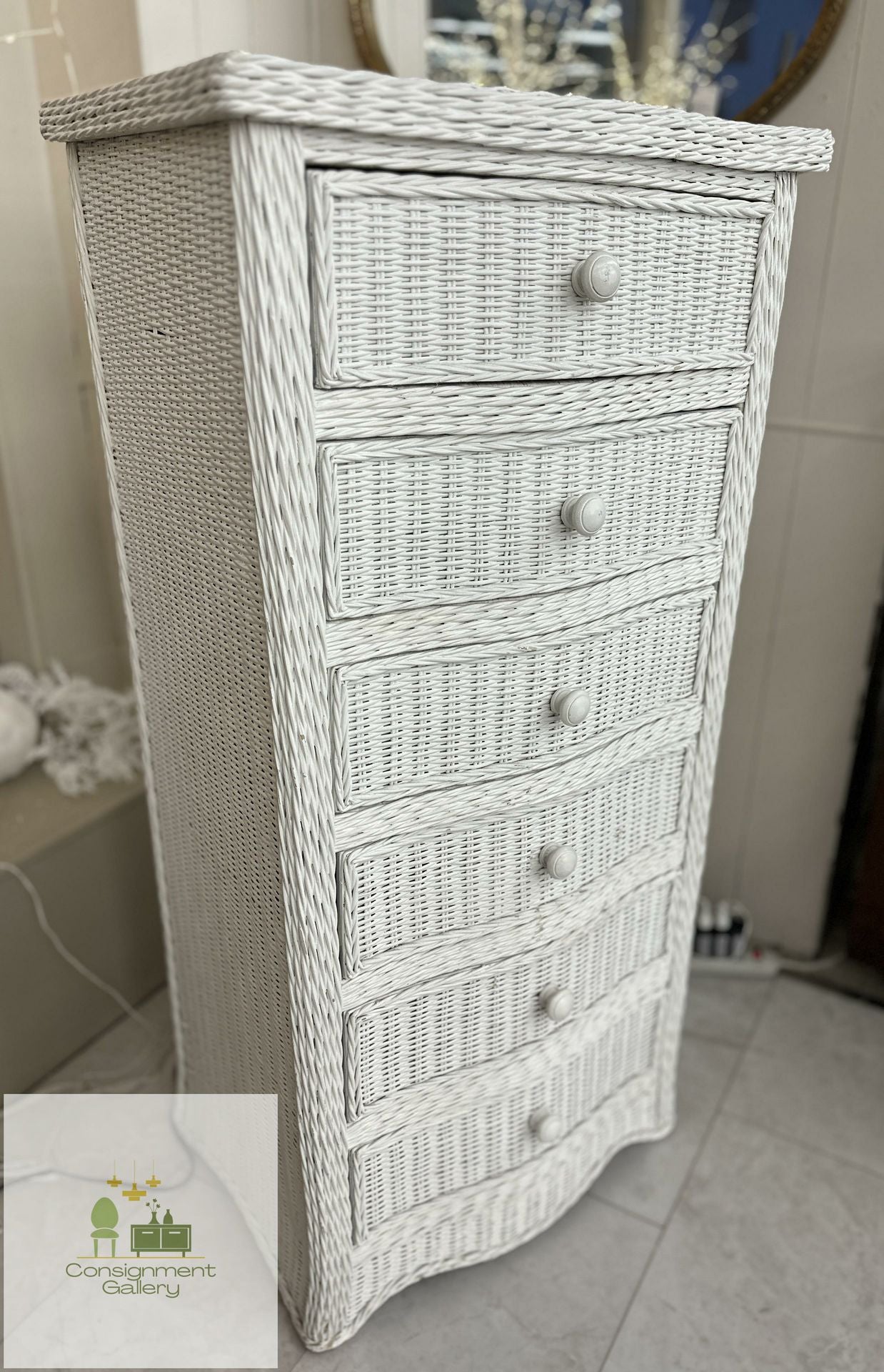 White Wicker 6 drawer tall chest