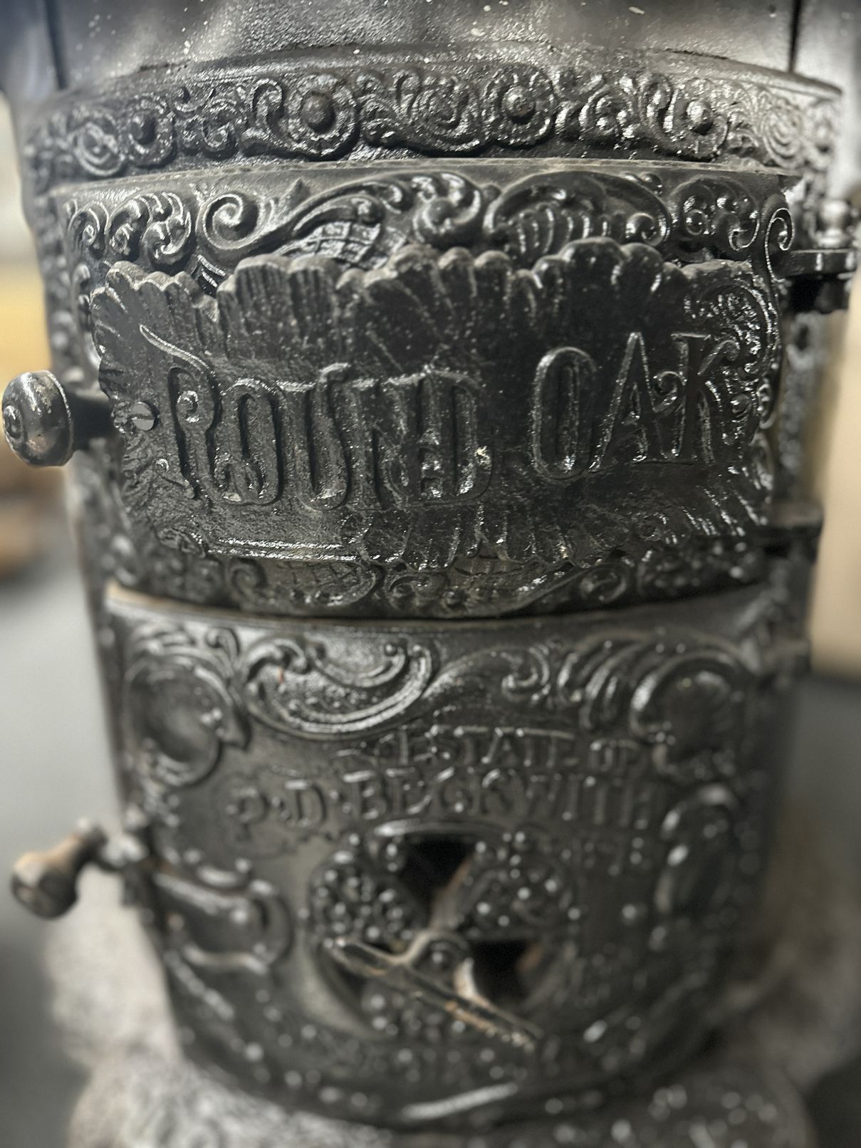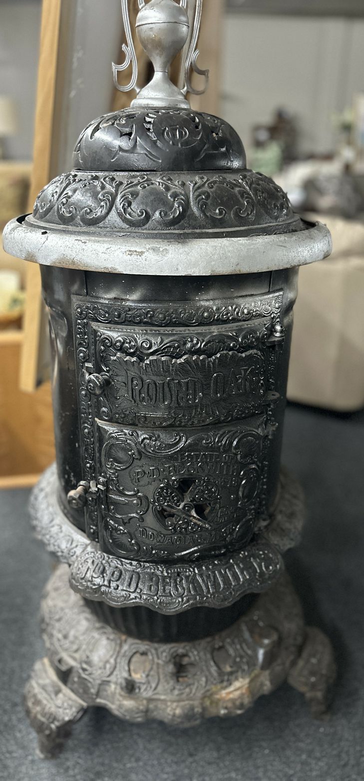 Antique Round Oak pot belly stove - PD Beckwith model E18
