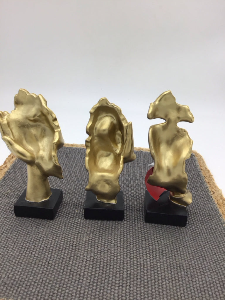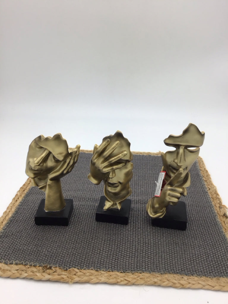 3 Pcs Thinker Statues Gold Abstract Hear No, Speak No, See No