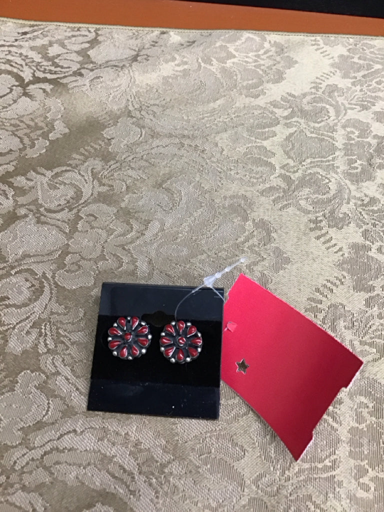 Native American Navajo Handmade Sterling Silver Red Coral Cluster Stud Earrings