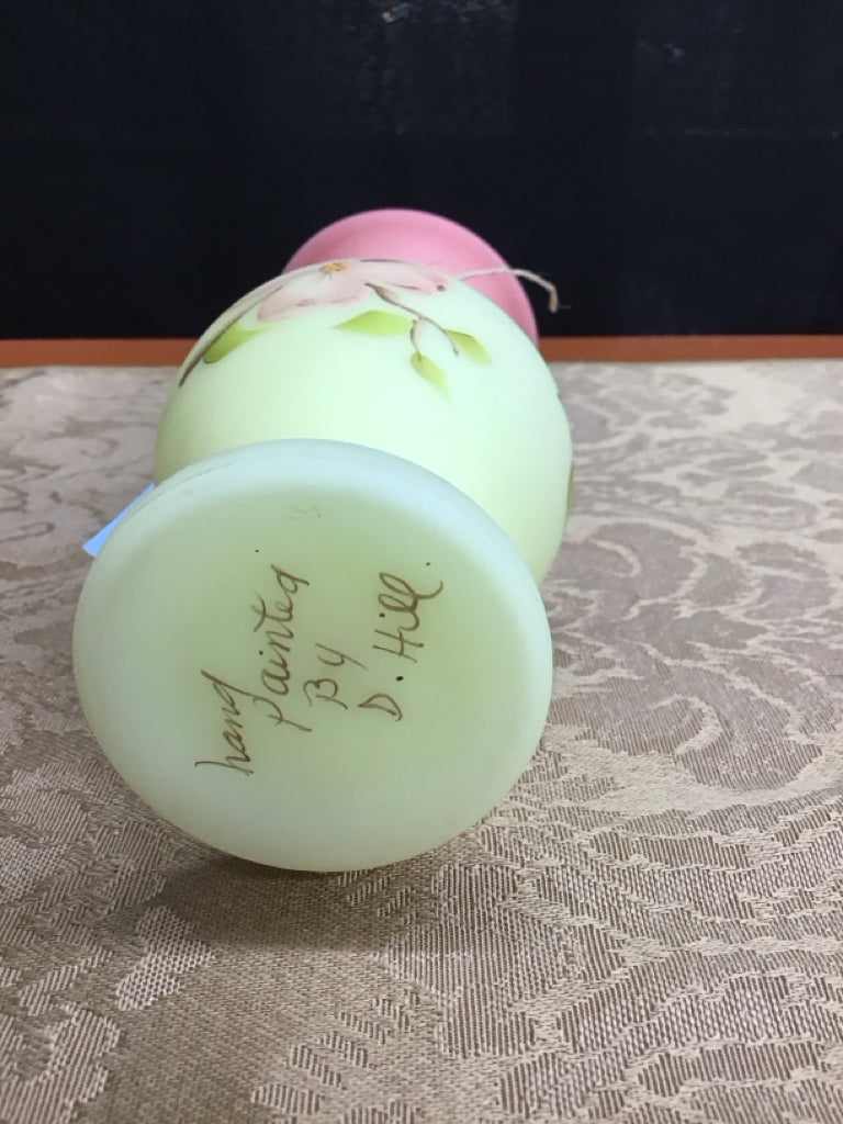 6" Burmese Glass Vase Dogwood Floral Yellow Custard Satin finish Signed
