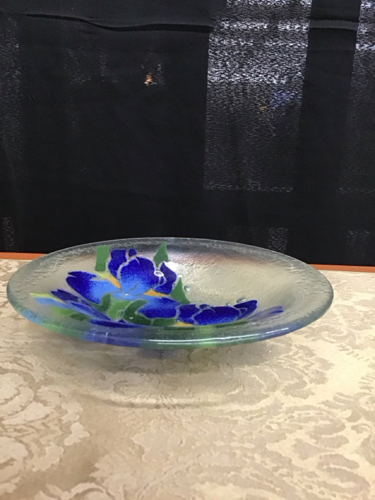 Peggy Karr Fused Glass Bowl Blue Iris