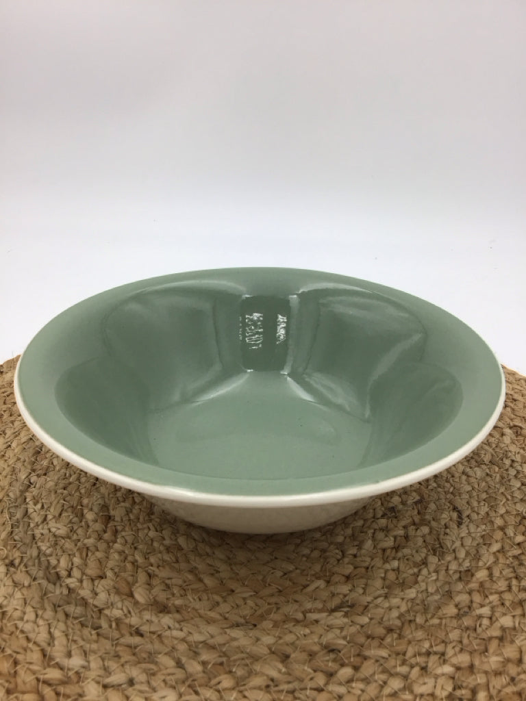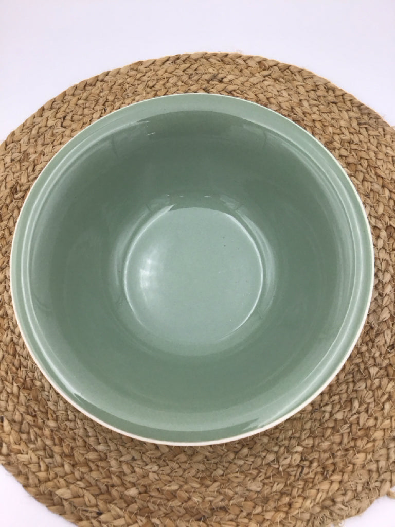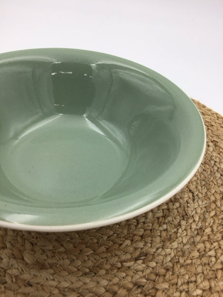 9" Round Serving Bowl Sage Green Persian Key Harkerware USA 1966- MCM Vintage