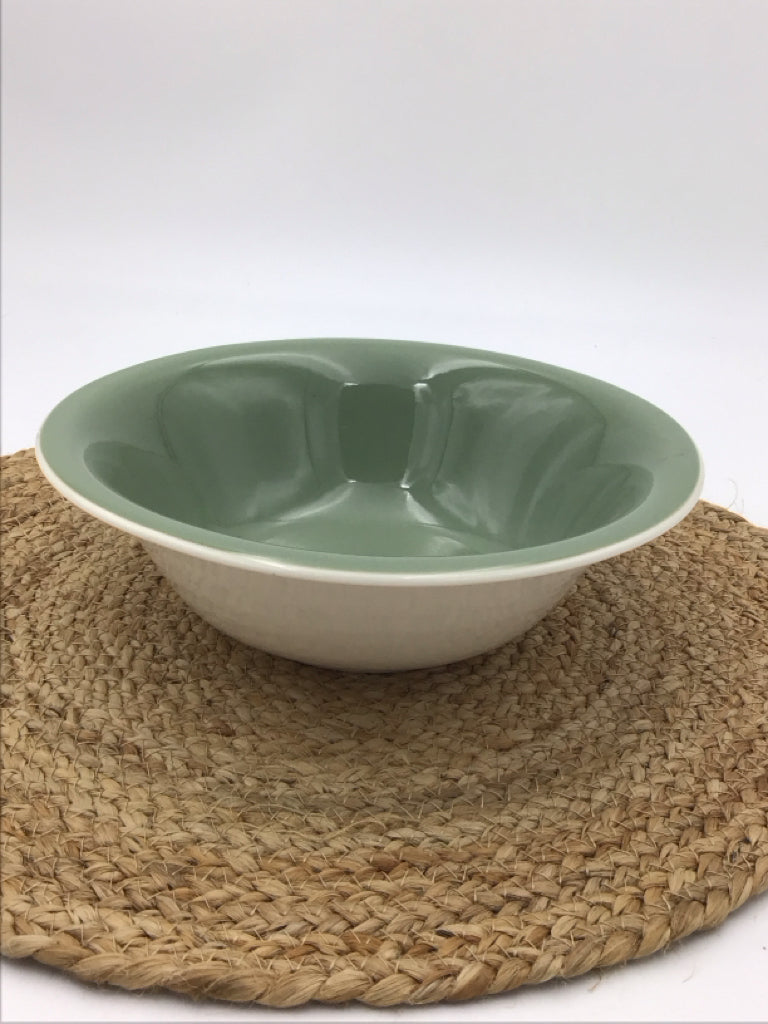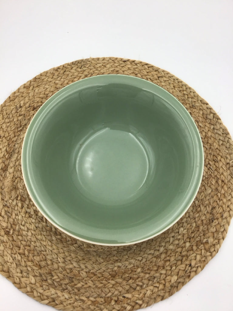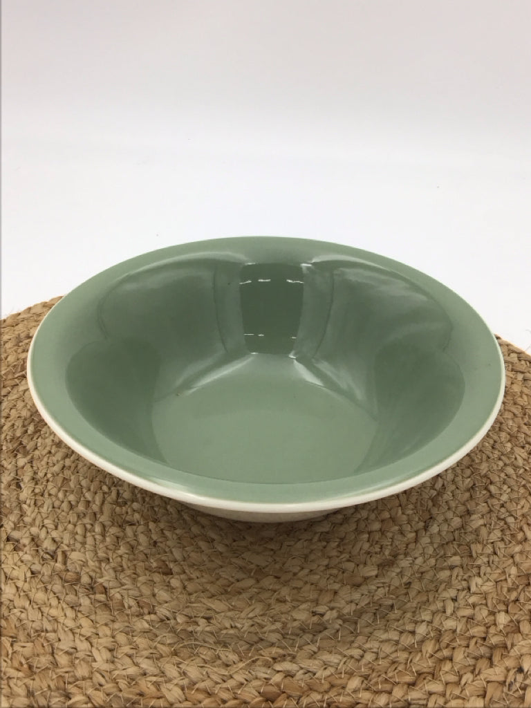 9" Round Serving Bowl Sage Green Persian Key Harkerware USA 1966- MCM Vintage