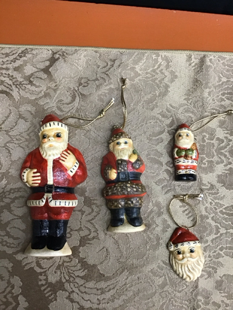 Vaillancourt - Set of 4 Chalkware santa ornaments