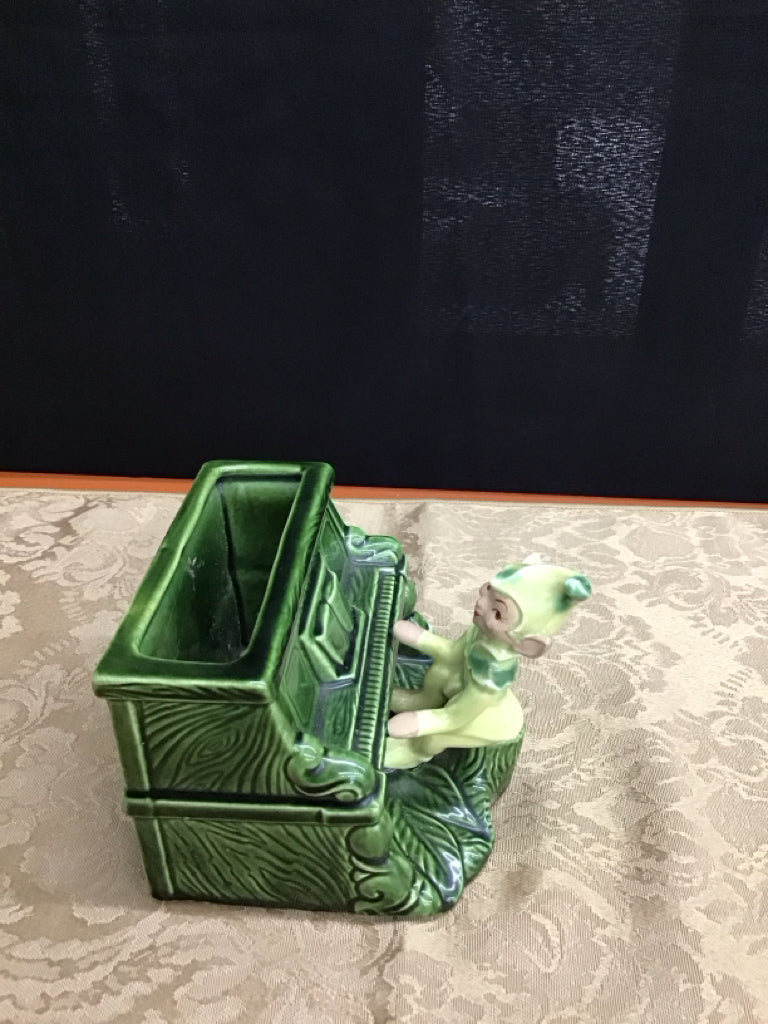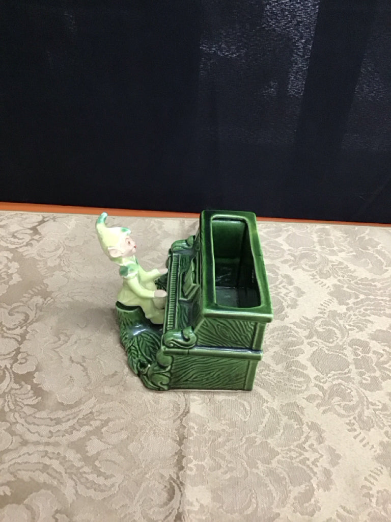 Vintage Pixie Elf at Piano, planter