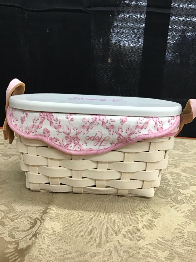 2005 HH White washed basket, lid, l/p