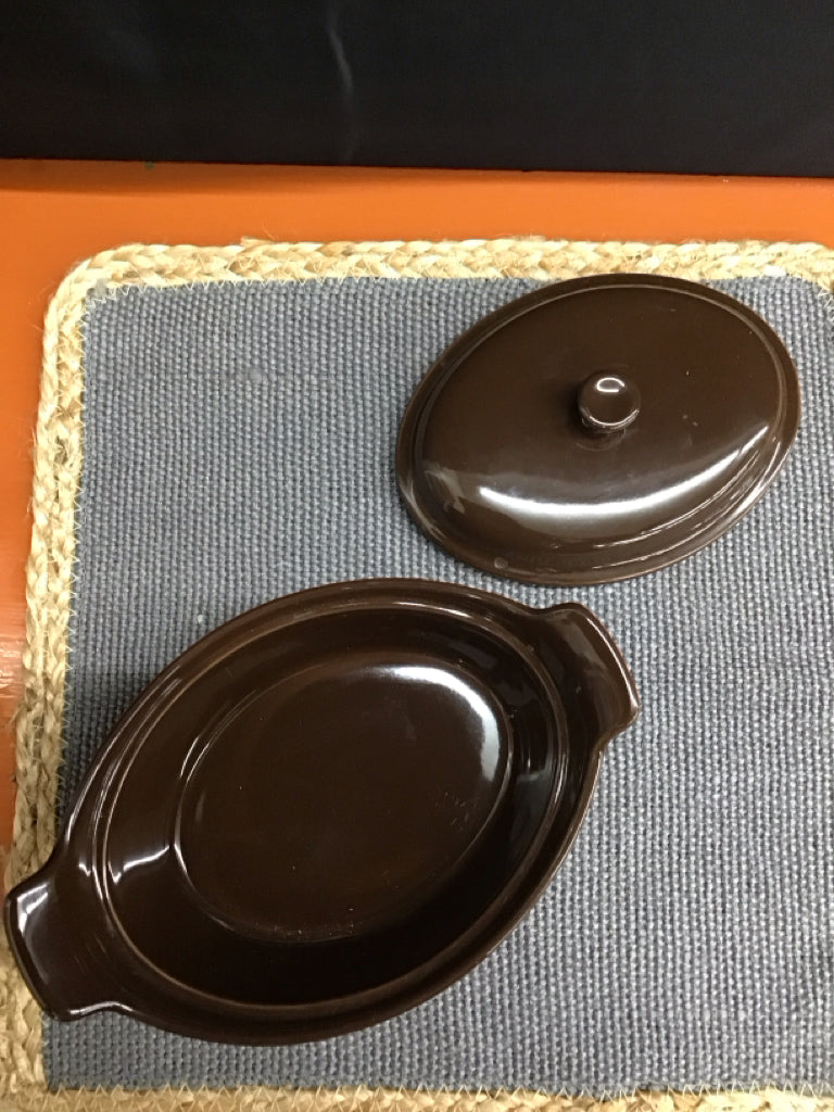 Woven Traditions Small Oval Chocolate Brown Casserole Dish Longaberger Pottery