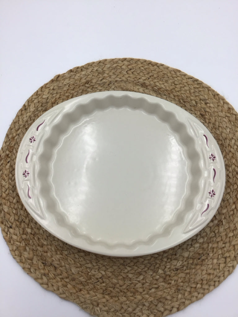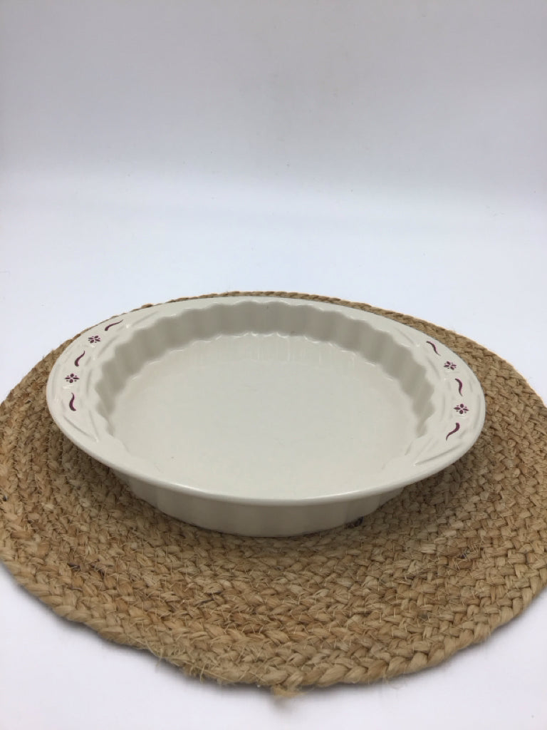Longaberger Woven Traditions Ivory, Burgundy Quiche Dish