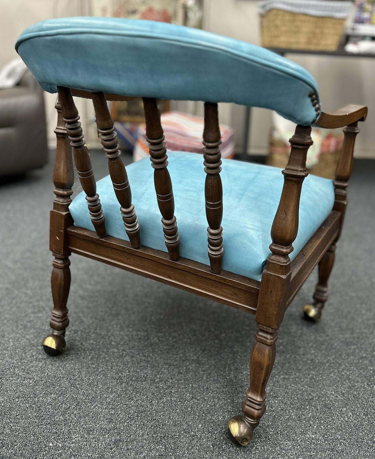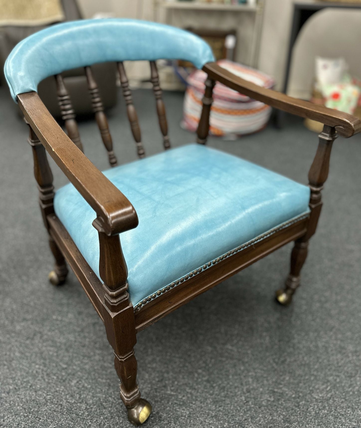 Antique Library Captains Chair, aqua marine leather
