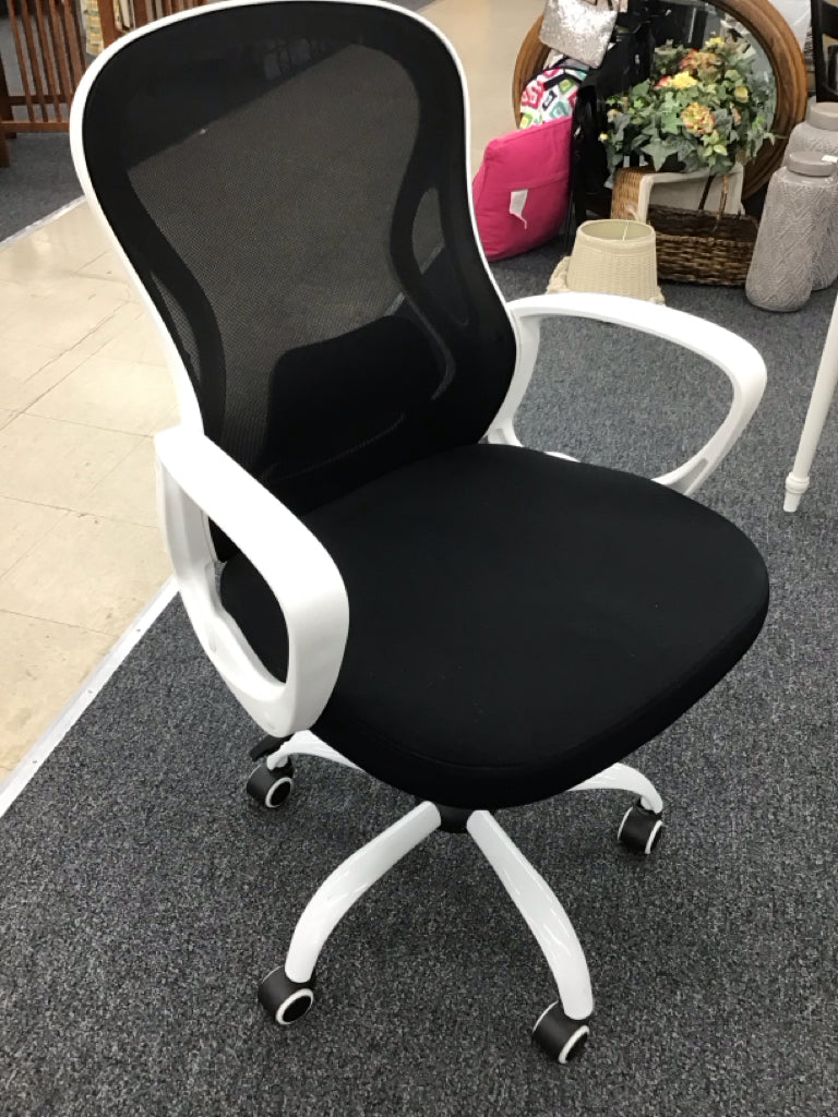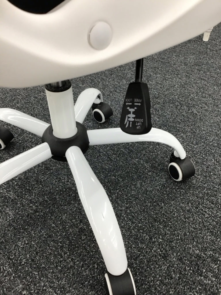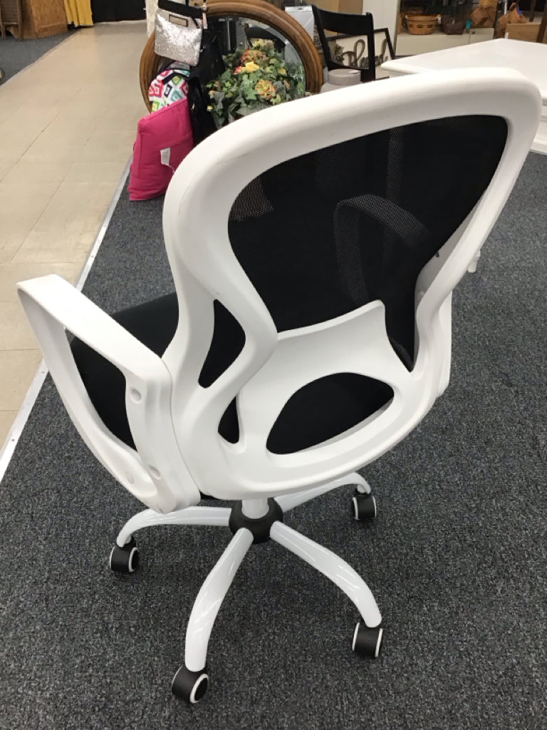 Adjustable desk chair, white frame with black mesh