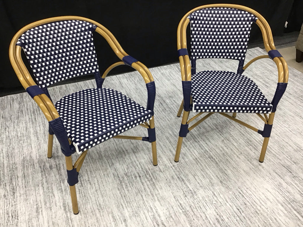 Glac Seat - Set of 2 Outdoor Bistro Arm chair, blue check