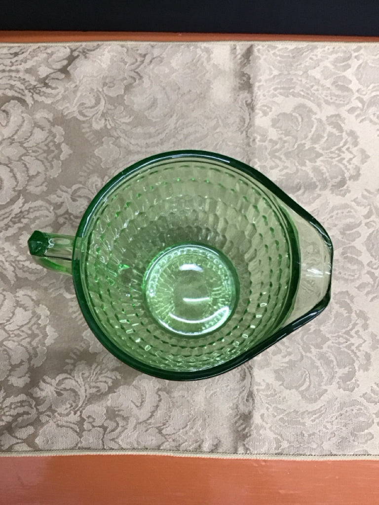 Green depression glass honeycomb pitcher