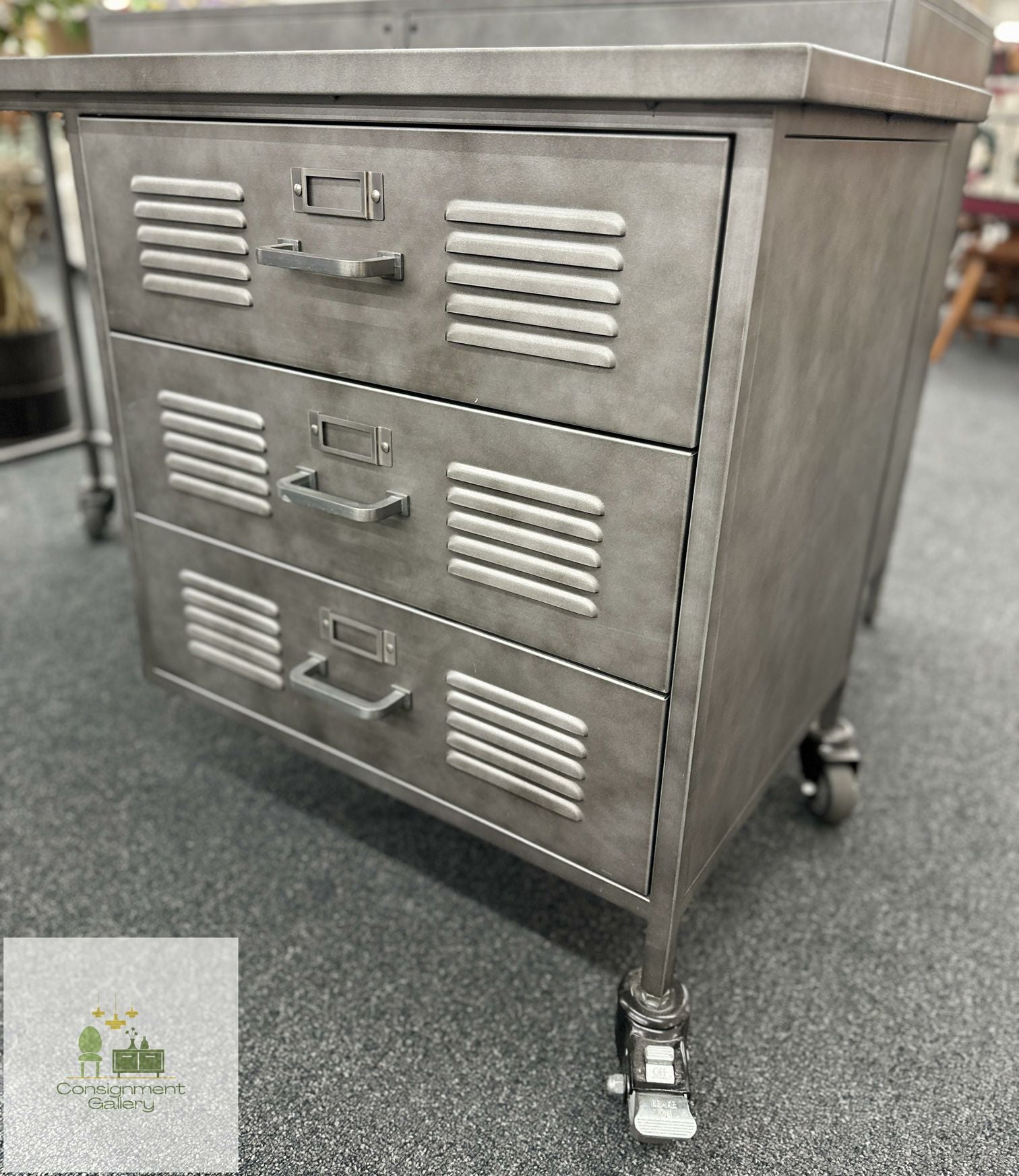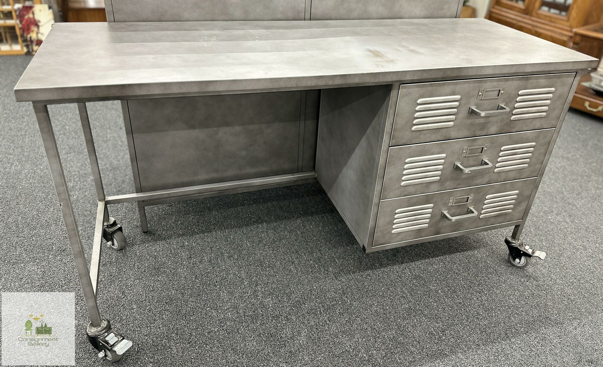 Pottery Barn - Locker style single pedestal desk, galvanized metal