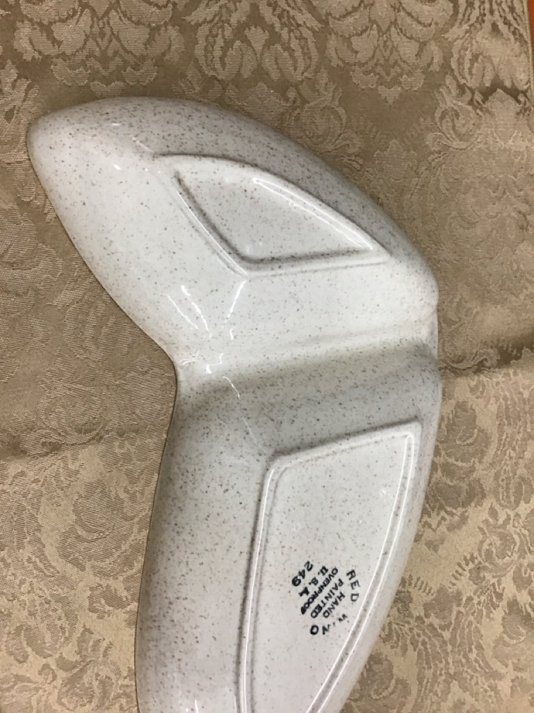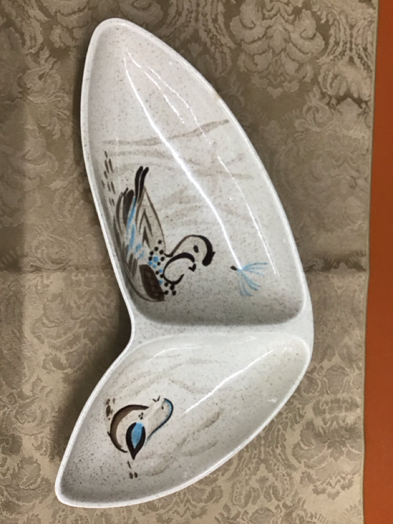 Vintage Red Wing Pottery Bob White Hand Painted Quail, Divided Boomerang Dish