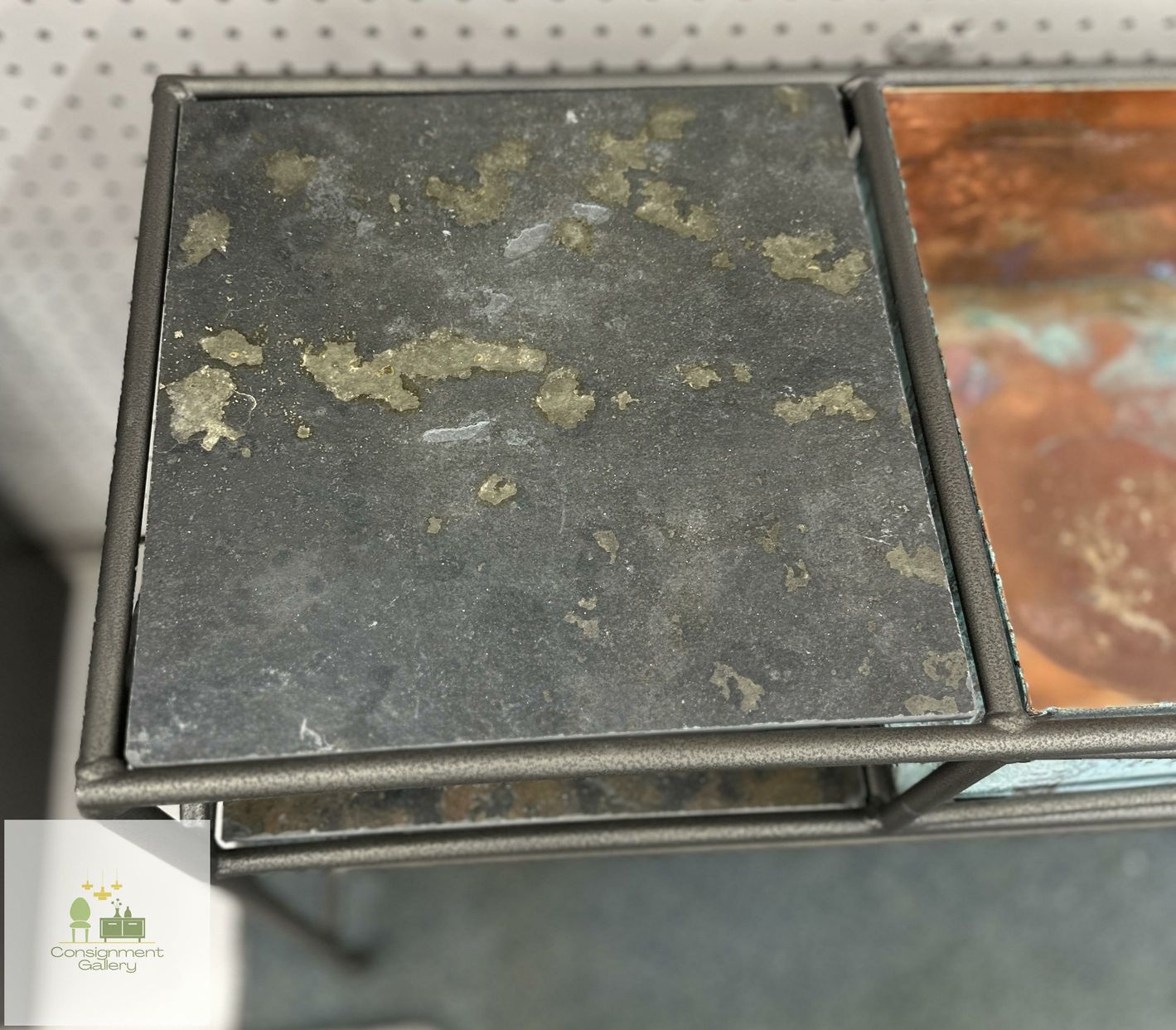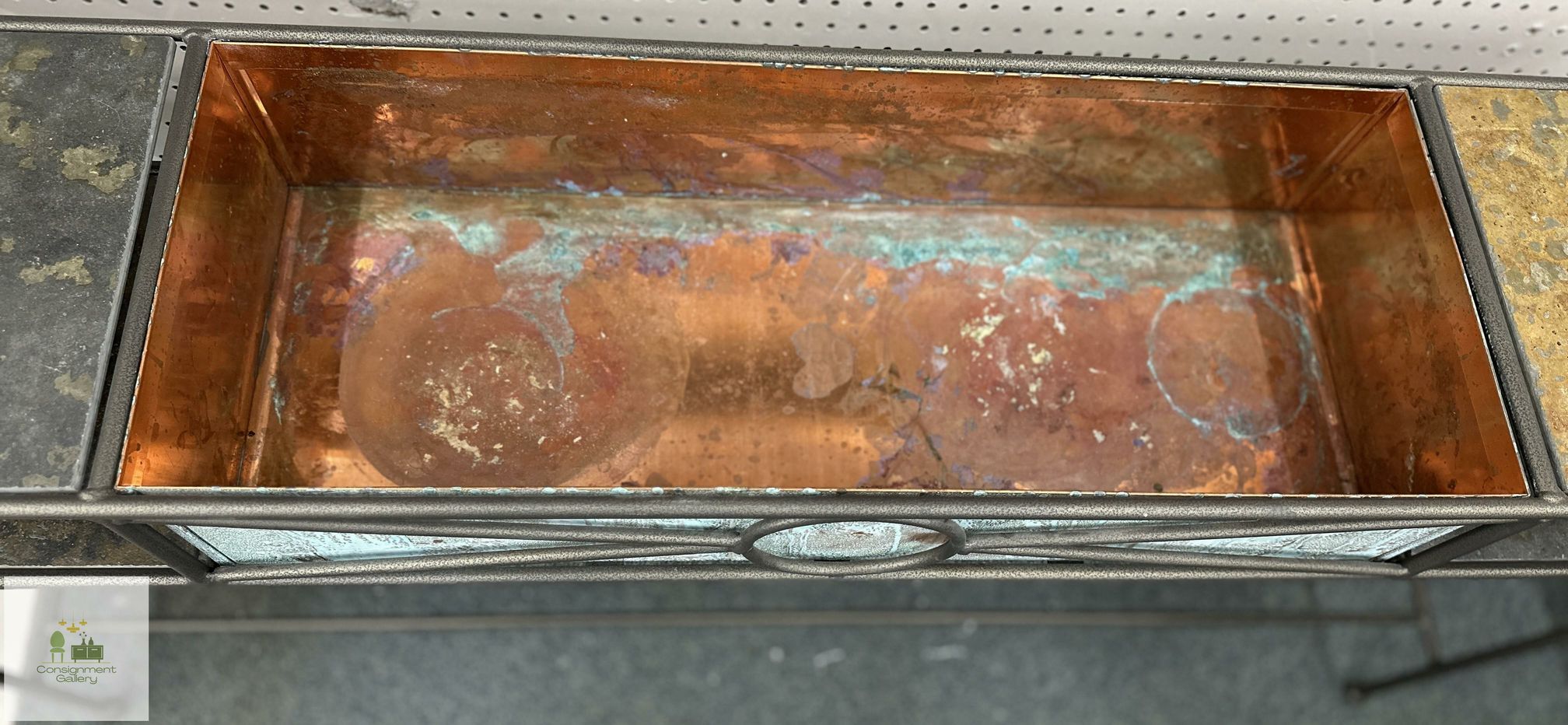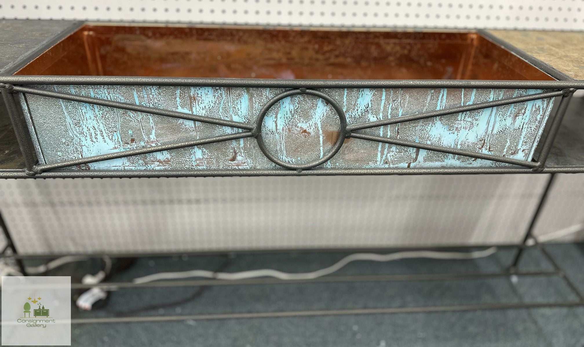 Wrought Iron console table with reversible copper basin & tile inserts