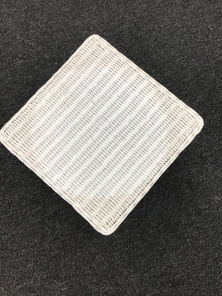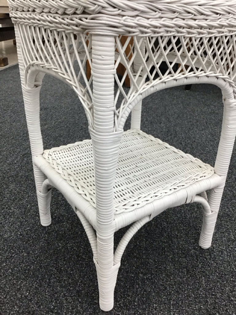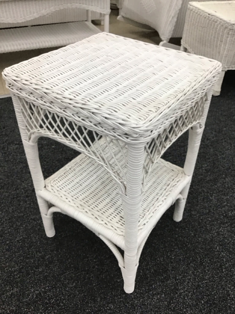 White wicker square side table, 2-tier
