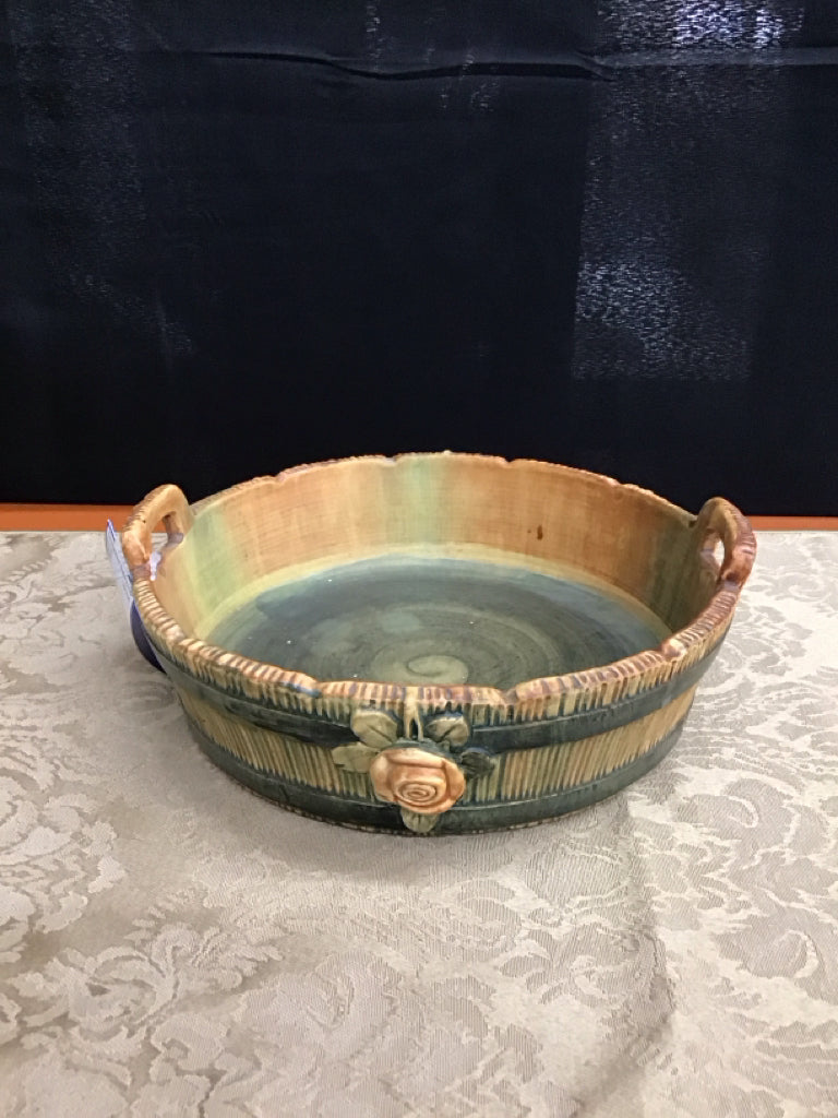 9" Vintage Weller Pottery Wood Rose, 2 Handles